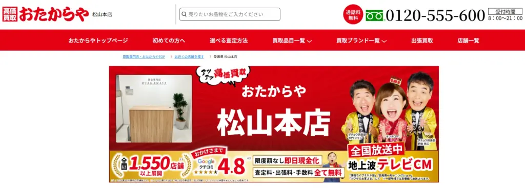 | 買取方法 | 出張買取、宅配買取、 店頭買取 |