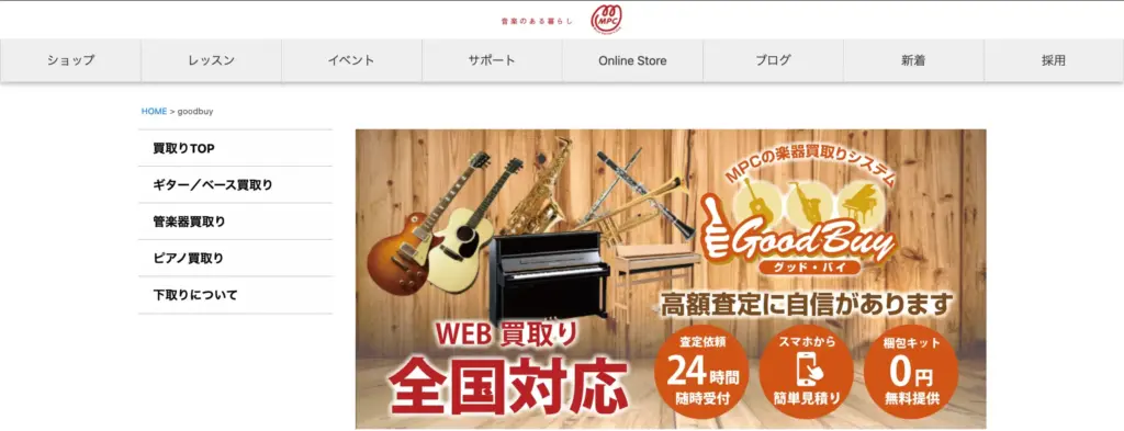 買取対象の楽器の種類も豊富で全国対応しており、出張料、査定料などの手数料無料のためおすすめできます。