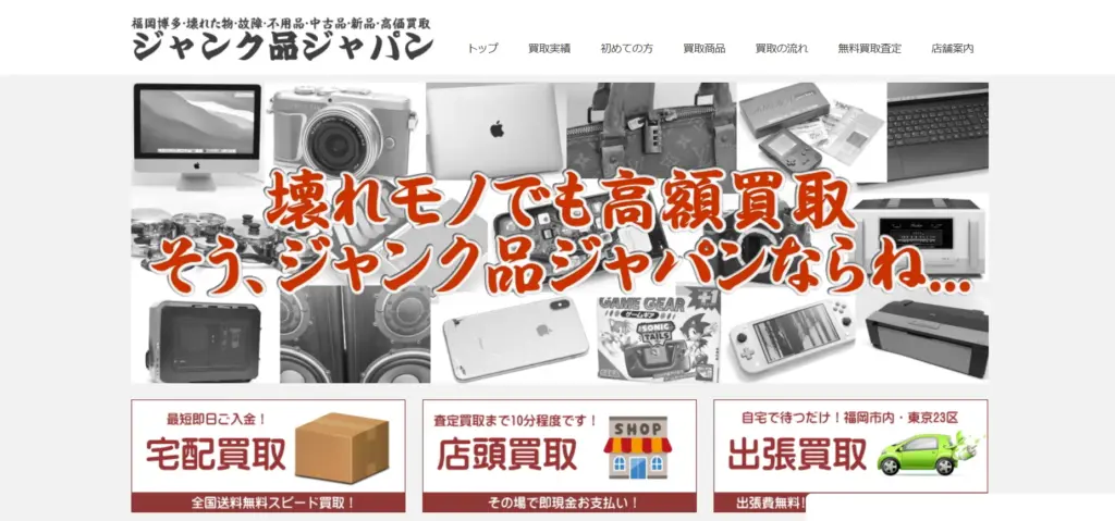 ジャンク品も査定対象となっているので他で断られた商品も一度無料査定を申し込んでみることをおすすめします。
