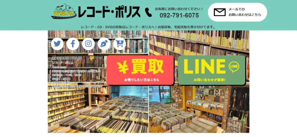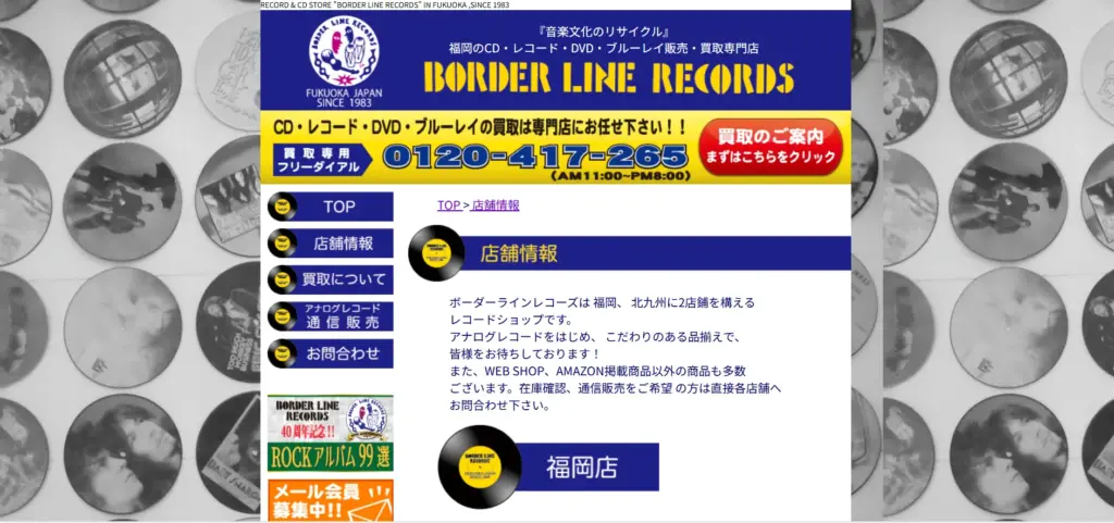 | 買取品目 | レコード、周辺機器 ※レコードは、LP盤のみ買取対象 |