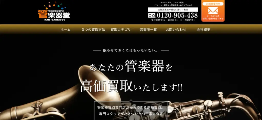 買取対象の楽器の種類も幅広く対応しており、最短即日訪問も可能。