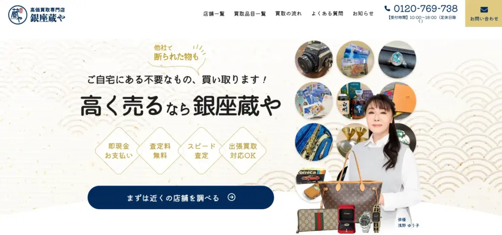 全国に実店舗も構えており、全国対応の出張買取、宅配買取と様々な買取方法に対応しています。