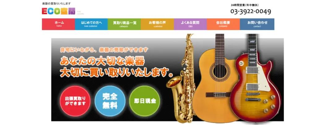 | 買取品目 | ギター、ベース、クラシックギター、アコースティックギター、サックス、トランペット、バイオリン、フルート、クラリネット、管楽器、ウクレレ、アンプ、エフェクターなど |