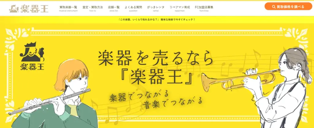 買取対象の楽器の種類も豊富で全国対応しており、出張料、査定料などの手数料無料のためおすすめできます。