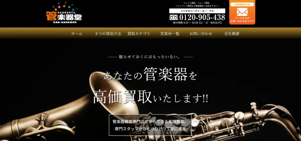買取対象の楽器の種類も幅広く対応しており、最短即日訪問も可能。