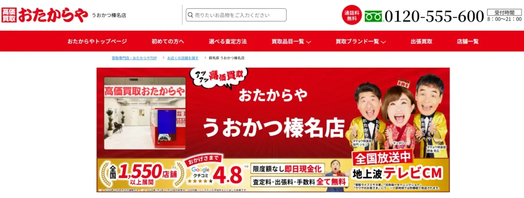 全国に実店舗も構えつつ、自宅に居ながら査定してもらえる全国対応の出張買取、宅配買取が高い支持を受けています。