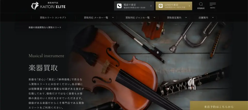 買取対象の楽器の種類も幅広く対応しており、最短即日訪問も可能。