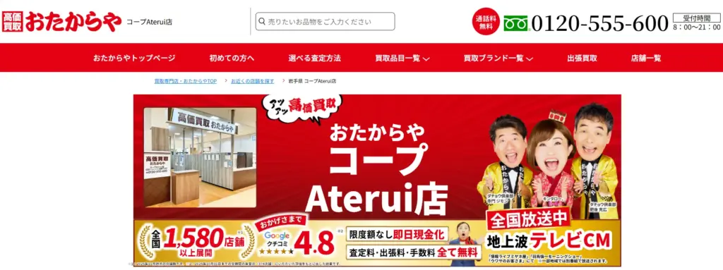 | 買取方法 | 店頭買取、出張買取、宅配買取 |