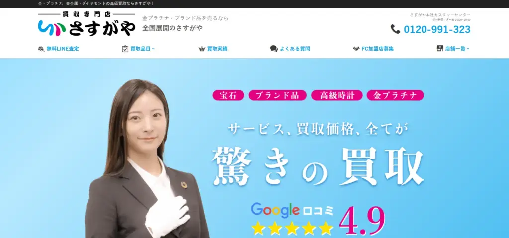 全国に実店舗も構えており、店頭、宅配、出張買取を展開しています。