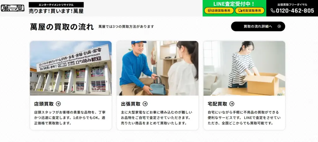 出張買取・店頭買取・宅配買取のうち、どの方法が利用できるかをチェックしましょう。