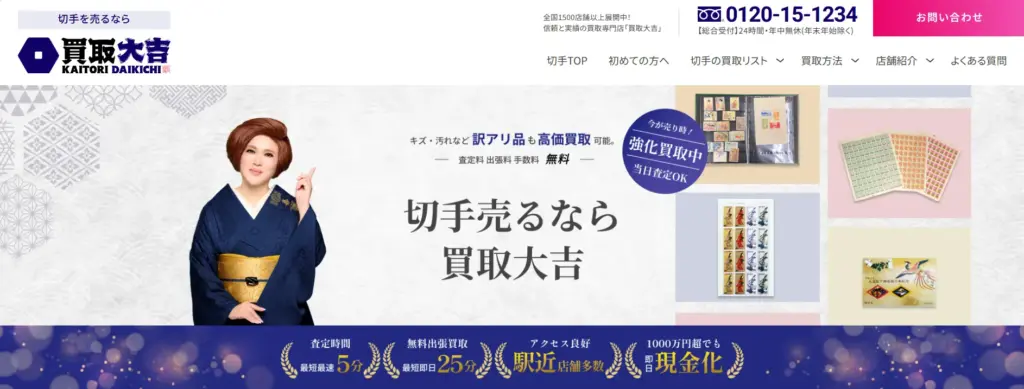 買取対象の切手の種類も幅広く、最短即日訪問も可能。