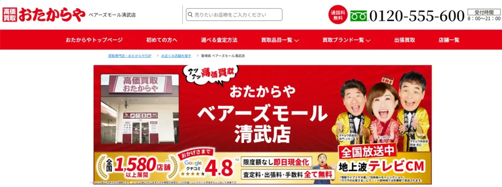 | 店舗名 | おたからや ベアーズモール清武店 |