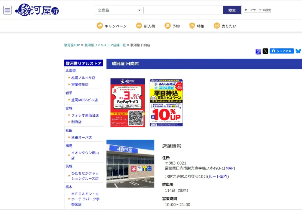 | 店舗住所 | 宮崎県延岡市塩浜町1丁目1532-1MEGAドン・キホーテ延岡店内 |