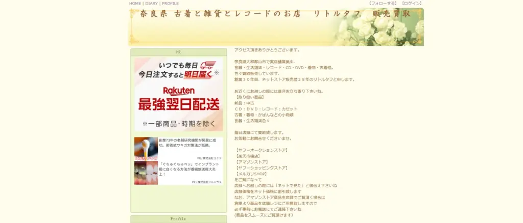 | 営業時間 | 10:00~19:00 ※日曜日、第2・第4土曜日定休 |