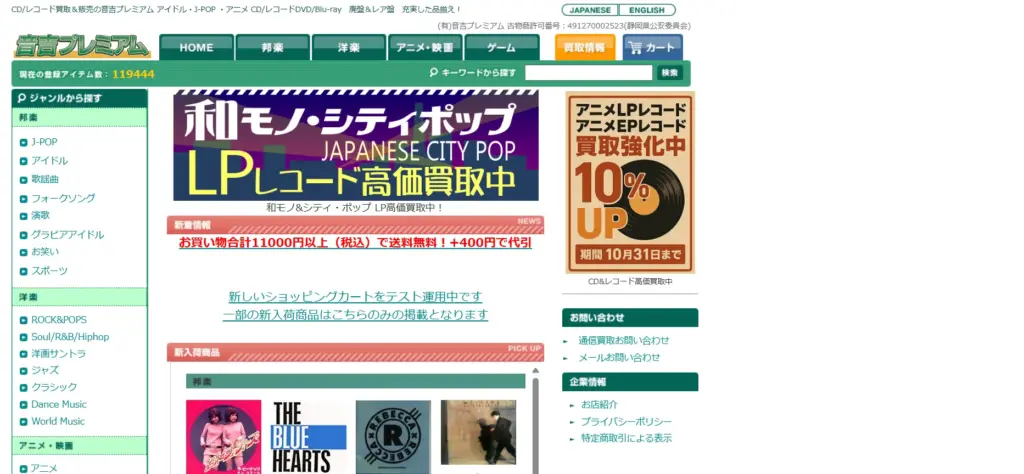 ジャズ・ソウル・ファンク専門、ロック・パンク・ハードコア専門、クラシック・現代音楽専門、和モノ・歌謡曲・演歌専門、アニソン・アイドル専門など、業者によって強みが異なります。