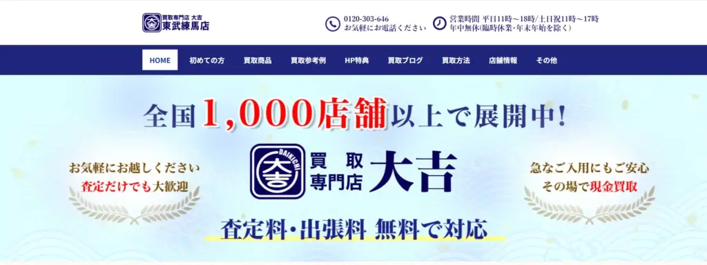 | 手数料 | 出張料・査定料・キャンセル料無料 |