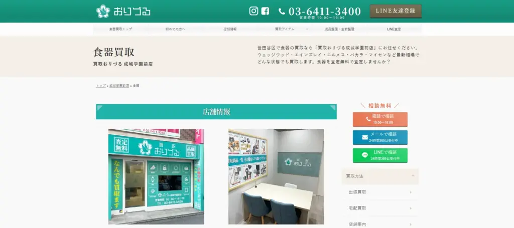 ウリエルは、食器買取をはじめとした総合買取サービスで、出張買取と催事買取のみ対応しています。