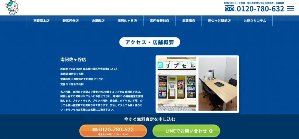 | 手数料 | 出張料・査定料・キャンセル料無料 |