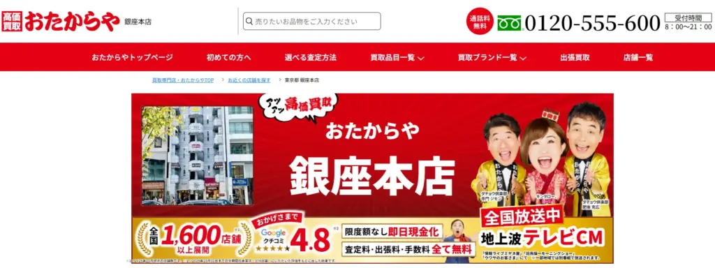全国に実店舗も構えつつ、自宅に居ながら査定してもらえる全国対応の出張買取、宅配買取が高い支持を受けています。