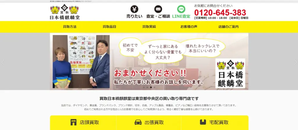 | 買取方法 | 出張買取、催事買取 |