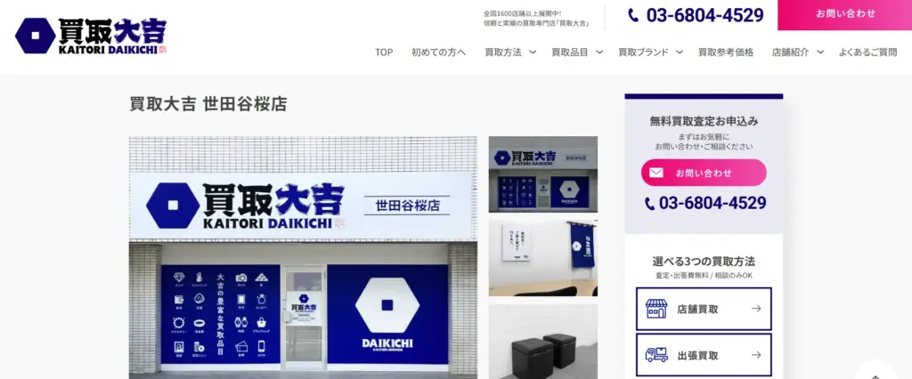 全国に実店舗も構えつつ、自宅に居ながら査定してもらえる全国対応の出張買取、宅配買取が高い支持を受けています。