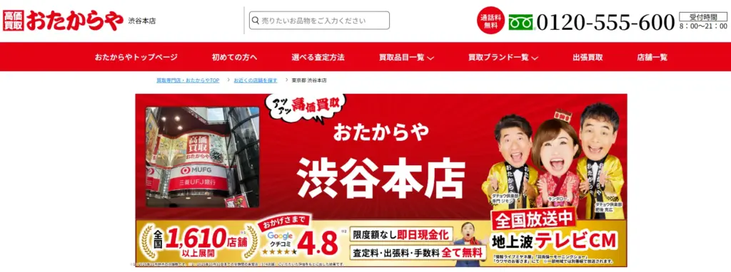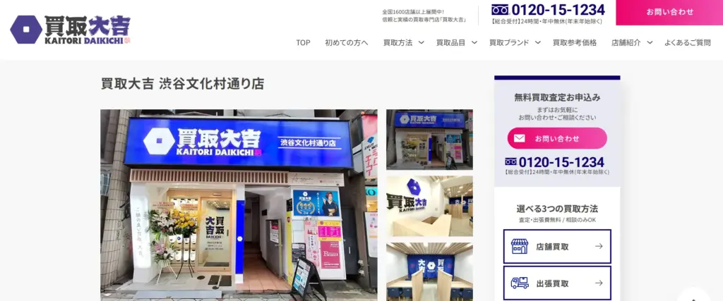 全国に実店舗も構えつつ、自宅に居ながら査定してもらえる全国対応の出張買取、宅配買取が高い支持を受けています。