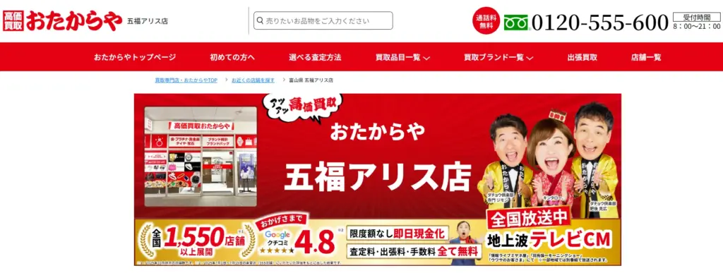 全国に実店舗も構えつつ、自宅に居ながら査定してもらえる全国対応の出張買取、宅配買取が高い支持を受けています。