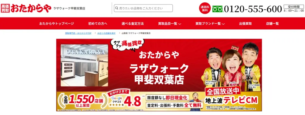 | 店舗名 | おたからや ラザウォーク甲斐双葉店 |