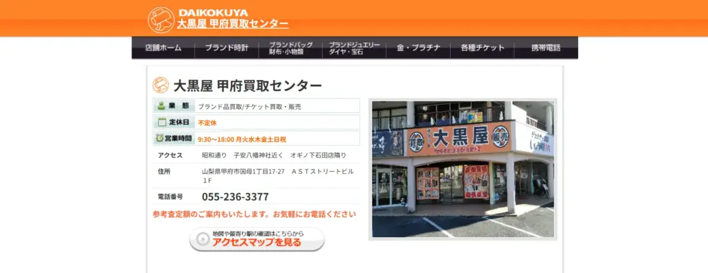 | 買取方法 | 店頭買取、出張買取、催事買取 |